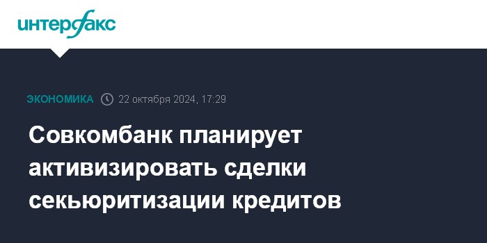 Совкомбанк планирует активизировать сделки секьюритизации кредитов
