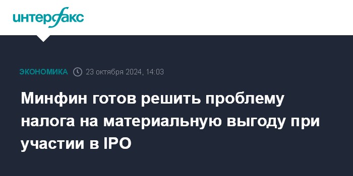 Минфин готов решить проблему налога на материальную выгоду при участии в IPO
