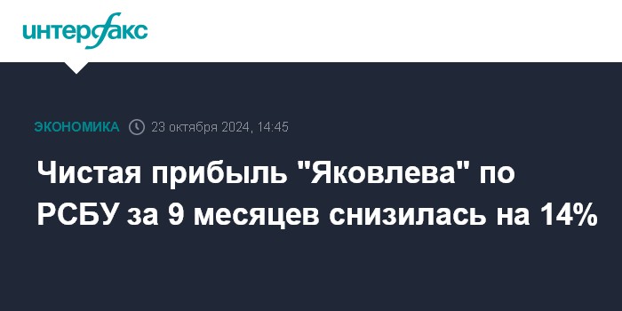 Чистая прибыль "Яковлева" по РСБУ за 9 месяцев снизилась на 14%