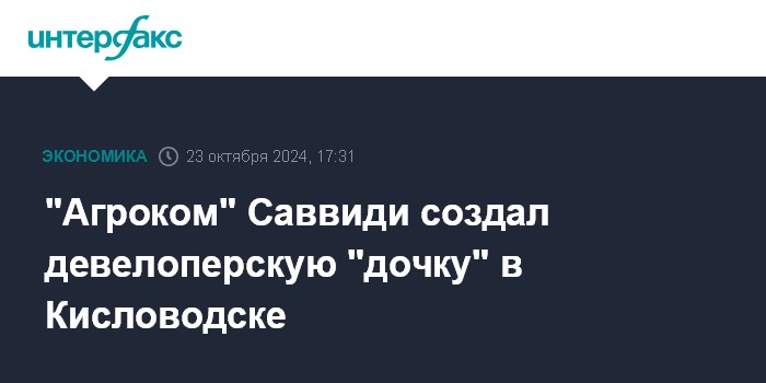 Москва. 23 октября. INTERFAX.RU - Группа "Агроком" Ивана Саввиди создала дочернее предприятие ООО "Кисловодск Девеломпент".