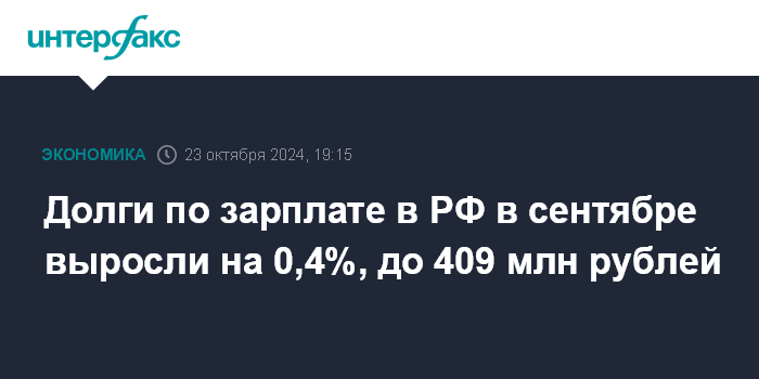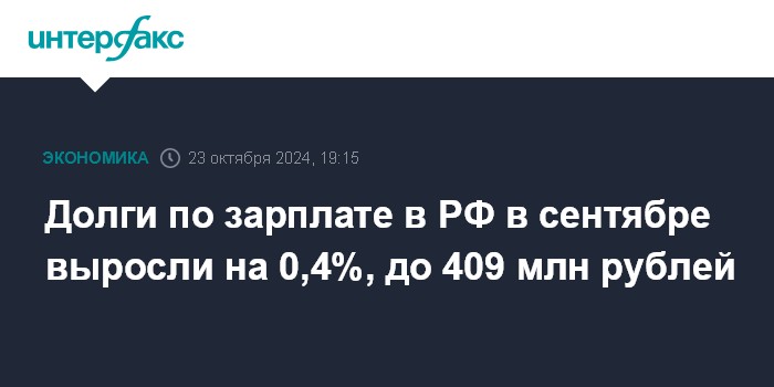 Долги по зарплате в РФ в сентябре выросли на 0,4%, до 409 млн рублей