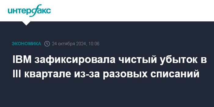 Москва. 24 октября. INTERFAX.RU - Американская International Business Machines Corp. (IBM) зафиксировала чистый убыток в третьем квартале 2024 года из-за разовых списаний, при этом скорректированный показатель превзошел прогнозы рынка.