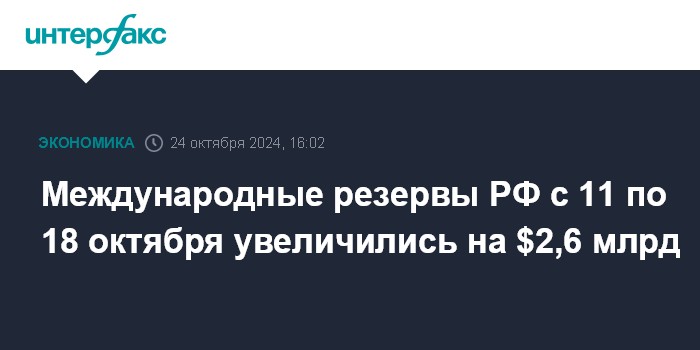 Международные резервы РФ с 11 по 18 октября увеличились на $2,6 млрд
