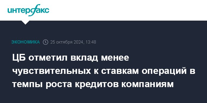 ЦБ отметил вклад менее чувствительных к ставкам операций в темпы роста кредитов компаниям