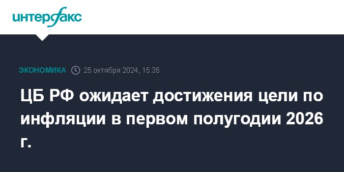 ЦБ РФ ожидает достижения цели по инфляции в первом полугодии 2026 г.