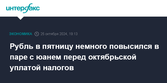 Рубль в пятницу немного повысился в паре с юанем перед октябрьской уплатой налогов