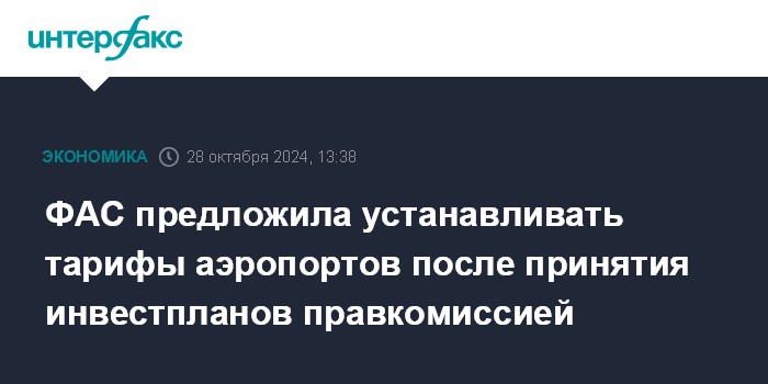 Москва. 28 октября. INTERFAX.RU - Федеральная антимонопольная служба (ФАС) РФ предложила устанавливать долгосрочные тарифы на обслуживание аэропортов только после принятия правкомиссией по транспорту инвестиционных планов по их обслуживанию.