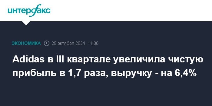 Adidas в III квартале увеличила чистую прибыль в 1,7 раза, выручку - на 6,4%