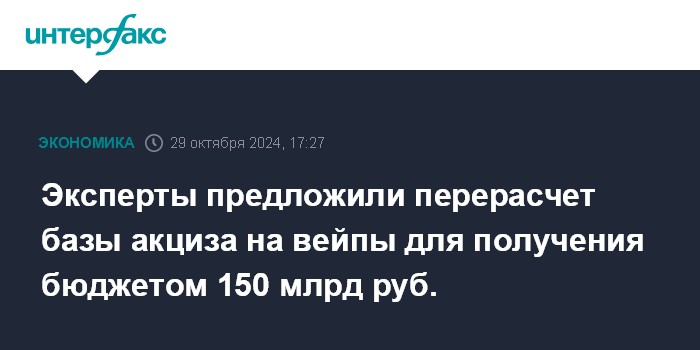 Эксперты предложили перерасчет базы акциза на вейпы для получения бюджетом 150 млрд руб.