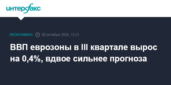 ВВП еврозоны в III квартале вырос на 0,4%, вдвое сильнее прогноза
