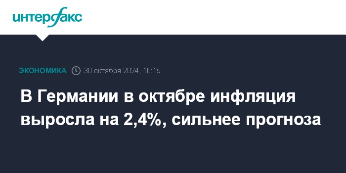 В Германии в октябре инфляция выросла на 2,4%, сильнее прогноза
