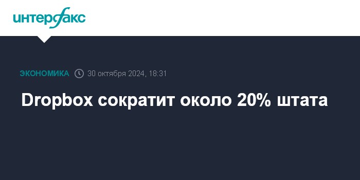 Москва. 30 октября. INTERFAX.RU - Американская Dropbox Inc., создатель одноименного облачного сервиса по хранению данных, планирует уволить около 20% сотрудников.