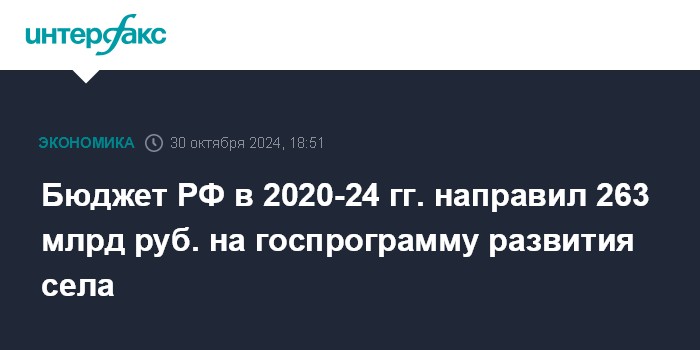 Бюджет РФ в 2020-24 гг. направил 263 млрд руб. на госпрограмму развития села