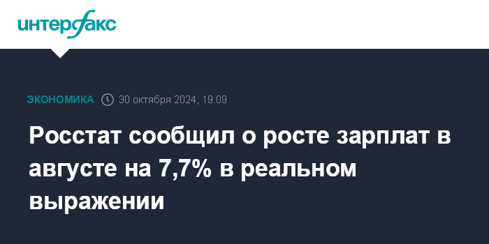 Росстат сообщил о росте зарплат в августе на 7,7% в реальном выражении