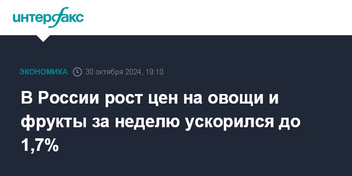 В России рост цен на овощи и фрукты за неделю ускорился до 1,7%