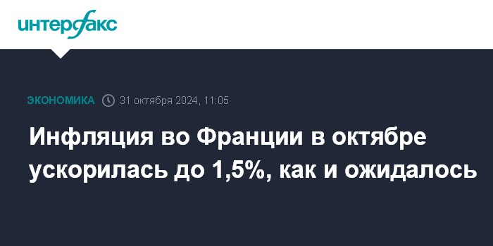 Инфляция во Франции в октябре ускорилась до 1,5%, как и ожидалось