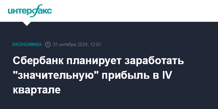 Сбербанк планирует заработать "значительную" прибыль в IV квартале