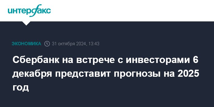 Сбербанк на встрече с инвесторами 6 декабря представит прогнозы на 2025 год