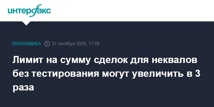 Лимит на сумму сделок для неквалов без тестирования могут увеличить в 3 раза