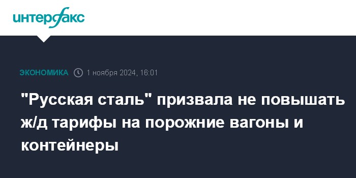Помимо возможного увеличения тарифов на порожний пробег и контейнерные перевозки, производители стали выражают опасения, связанные с индексацией грузовых ж/д тарифов в 2025 году. Так, в сентябрьском письме "Русской стали" вице-премьеру Савельеву (копия также имеется в распоряжении "Интерфакса") металлурги предупреждают, что предлагаемый рост тарифов с 1 января 2025 г. на 22,7% либо на 17,2% (3,6% с 1 ноября 2024 года и 13% с 1 января 2025 года) приведет, в частности, к потере экспортных рынков по металлопрокату, который и так существенно просел из-за санкционного давления и высокой волатильности макроэкономической обстановки.