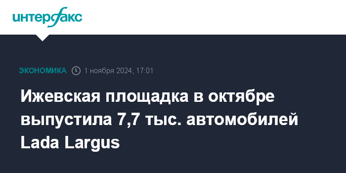 "Несмотря на все сложности и санкционное давление, у нас очередное достижение: в октябре произведено рекордное количество автомобилей - 7711 Lada Largus", - говорится в сообщении со ссылкой на гендиректора предприятия Александра Богачева.