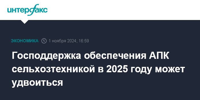 Господдержка обеспечения АПК сельхозтехникой в 2025 году может удвоиться