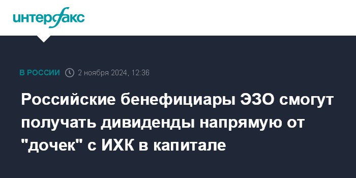 Российские бенефициары ЭЗО смогут получать дивиденды напрямую от "дочек" с ИХК в капитале