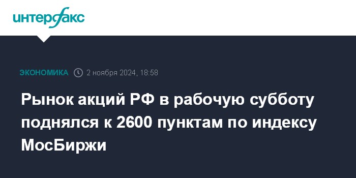 Рынок акций РФ в рабочую субботу поднялся к 2600 пунктам по индексу МосБиржи