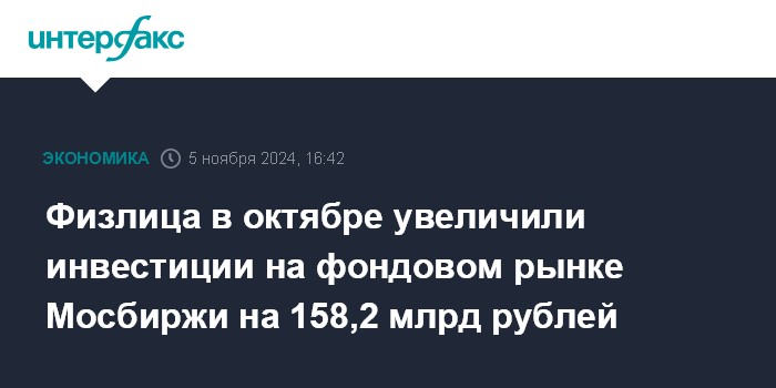 Физлица в октябре увеличили инвестиции на фондовом рынке Мосбиржи на 158,2 млрд рублей