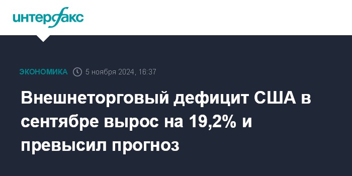 Внешнеторговый дефицит США в сентябре вырос на 19,2% и превысил прогноз