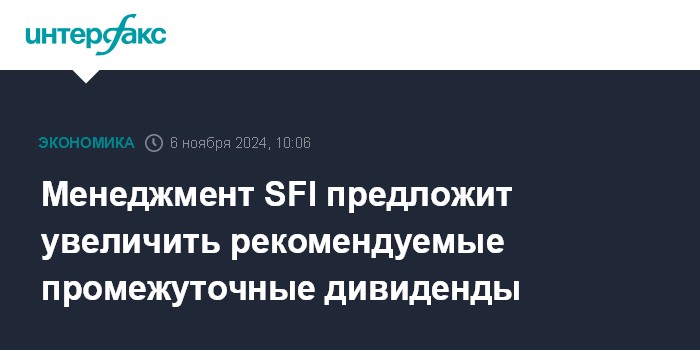 Менеджмент SFI предложит увеличить рекомендуемые промежуточные дивиденды
