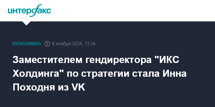 Заместителем гендиректора "ИКС Холдинга" по стратегии стала Инна Походня из VK