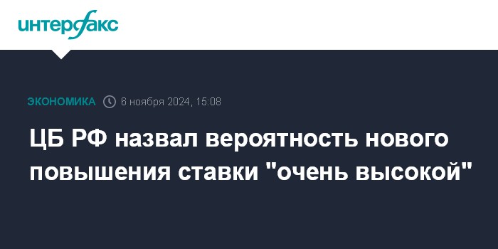 ЦБ РФ назвал вероятность нового повышения ставки "очень высокой"