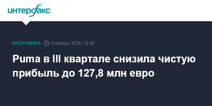 Puma в III квартале снизила чистую прибыль до 127,8 млн евро