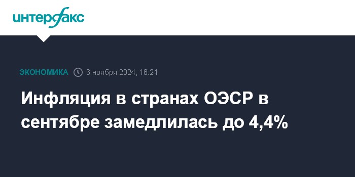 Инфляция в странах ОЭСР в сентябре замедлилась до 4,4%
