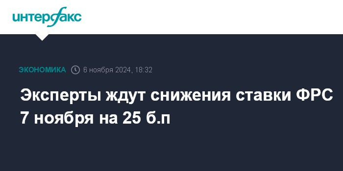 Эксперты ждут снижения ставки ФРС 7 ноября на 25 б.п