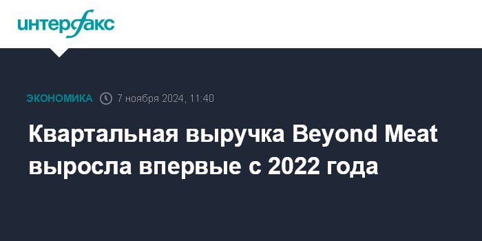 Москва. 7 ноября. INTERFAX.RU - Американский производитель растительных заменителей мяса Beyond Meat Inc. сократил чистый убыток в третьем финансовом квартале в 2,7 раза, увеличив выручку впервые с 2022 года.