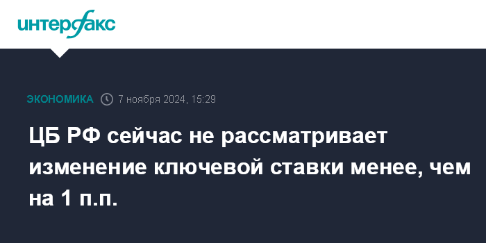ЦБ РФ сейчас не рассматривает изменение ключевой ставки менее, чем на 1 п.п.