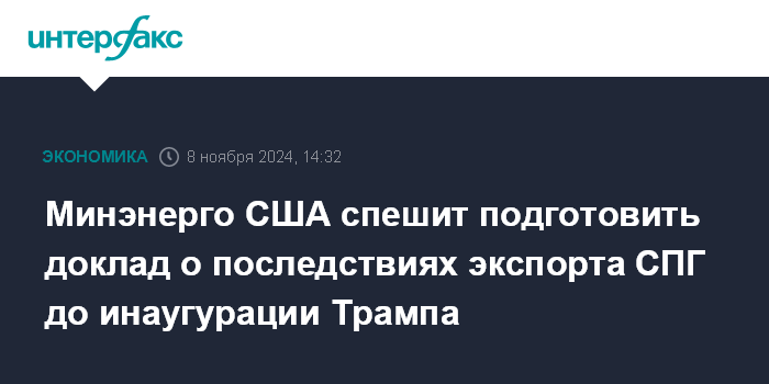 Минэнерго США спешит подготовить доклад о последствиях экспорта СПГ до инаугурации Трампа