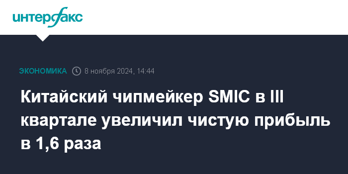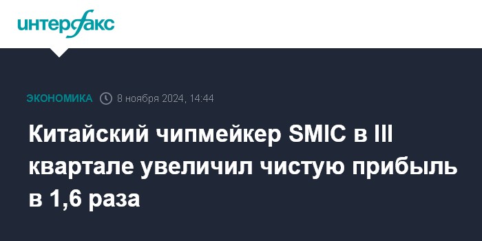 Китайский чипмейкер SMIC в III квартале увеличил чистую прибыль в 1,6 раза