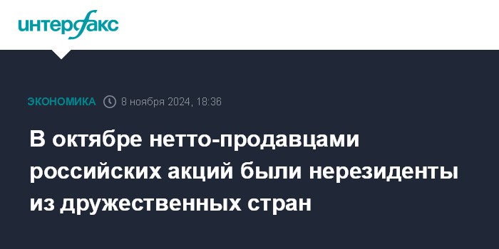 В октябре нетто-продавцами российских акций были нерезиденты из дружественных стран
