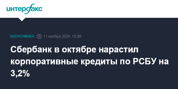 Сбербанк в октябре нарастил корпоративные кредиты по РСБУ на 3,2%