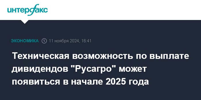 Техническая возможность по выплате дивидендов "Русагро" может появиться в начале 2025 года