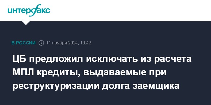 ЦБ предложил исключать из расчета МПЛ кредиты, выдаваемые при реструктуризации долга заемщика
