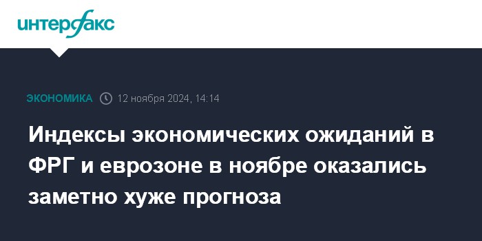 Индексы экономических ожиданий в ФРГ и еврозоне в ноябре оказались заметно хуже прогноза