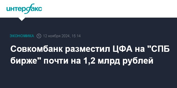 Совкомбанк разместил ЦФА на "СПБ бирже" почти на 1,2 млрд рублей