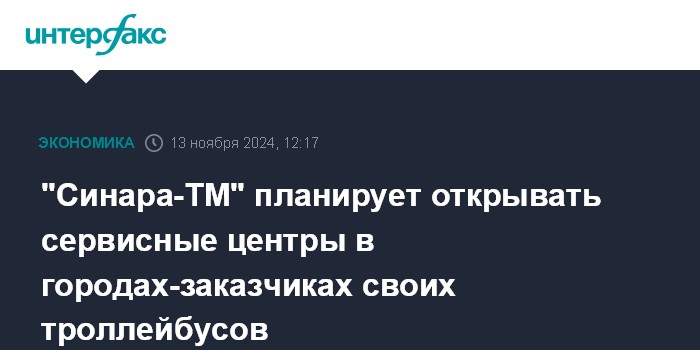 Москва. 13 ноября. INTERFAX.RU - ООО "Синара - городские машины" ("Синара-ГМ", входит в "Синара - транспортные машины, СТМ) планирует открыть сервисные центры со складами запчастей во всех регионах присутствия троллейбусов компании, сообщается в телеграм-канале СТМ.