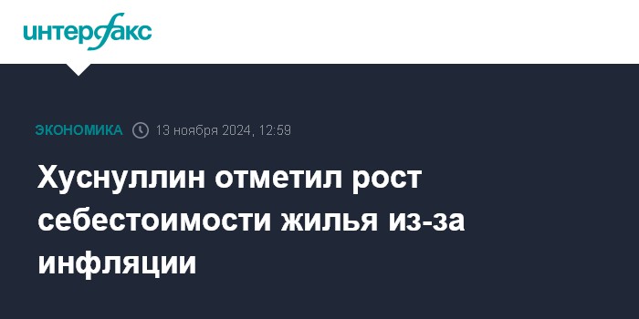 Москва. 13 ноября. INTERFAX.RU - Инфляция сегодня влияет не только на рост цен на жилье, но и на его себестоимость, заявил в национальном центре "Россия" вице-премьер Марат Хуснуллин.