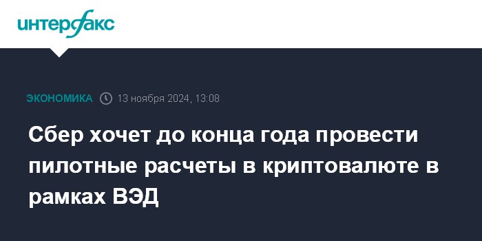 Сбер хочет до конца года провести пилотные расчеты в криптовалюте в рамках ВЭД
