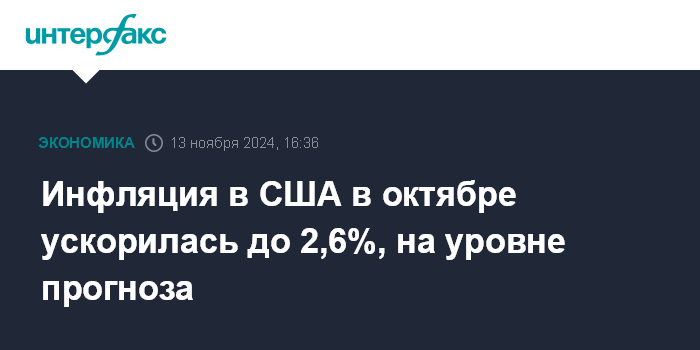 Инфляция в США в октябре ускорилась до 2,6%, на уровне прогноза